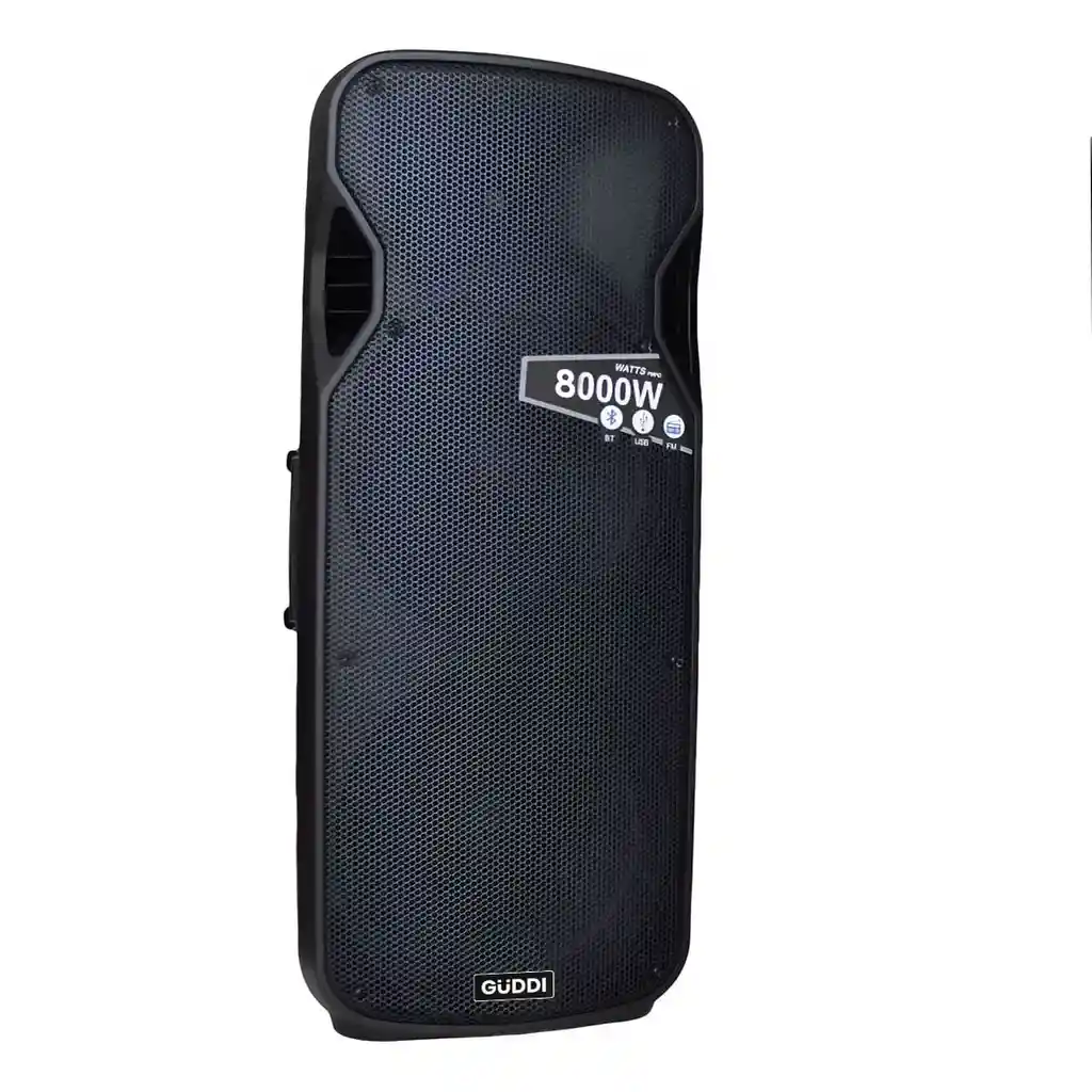 Cabina Parlante Activa Guddi 15 Pulgadas Doble 8000W 2 Vías Modelo GD-81815 | Color: Negro La cabina activa Guddi GD-81815 es un sistema profesional de dos vías diseñado para ofrecer alta potencia, excelente proyección sonora y claridad en todo tipo de eventos. Incorpora un woofer con bobina de 2.5" TL y un imán de 50 oz, lo que permite obtener graves profundos y estables, ideales para música, voces e instrumentos. Para las frecuencias altas, integra un tweeter de 44 mm con diafragma de titanio, que asegura agudos limpios incluso a volúmenes elevados. Su respuesta de frecuencia abarca desde 50 Hz hasta 18 kHz, ofreciendo un rango amplio para una reproducción equilibrada. Con una sensibilidad de 96 dB y un máximo de 123 dB SPL, garantiza un sonido fuerte, claro y sin distorsiones. El valor de impedancia aparece registrado como 96 dB en la ficha técnica proporcionada, por lo cual se respeta tal cual para mantener la precisión de la información. El sistema incorpora un amplificador Class AB de 250 W RMS, que proporciona potencia continua y estable para usos prolongados. Su alimentación universal AC 110-240 V / 50-60 Hz permite utilizarla en distintos entornos sin necesidad de adaptadores adicionales. La cabina GD-81815 es ideal para DJs, iglesias, academias, eventos sociales, presentaciones y espacios donde se requiere gran volumen con calidad profesional. Especificaciones Técnicas Tipo: Bocina activa de 2 vías Woofer: Bobina 2.5" TL Imán: 50 oz Tweeter: 44 mm con diafragma de titanio Respuesta de frecuencia: 50 Hz – 18 kHz Sensibilidad: 96 dB Nivel máximo de presión sonora (Max SPL): 123 dB Impedancia: 96 dB (según ficha técnica original) Potencia RMS: 250 W Amplificador: Class AB Alimentación: AC 110-240 V / 50-60 Hz Garantía del vendedor: 6 meses