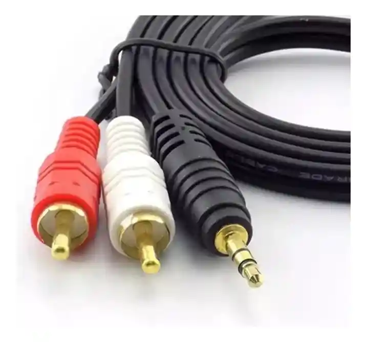 Conexión Versátil para tus Dispositivos de Audio El Cable Auxiliar 2 x 1 de 5 metros es perfecto para conectar tus dispositivos móviles a una variedad de aparatos de audio, incluyendo equipos fijos, teatros en casa, televisores, barras de sonido y computadoras. Características Principales: Conector Universal: Conexión de 1 plug 3.5mm a 2 RCA, compatible con una amplia gama de dispositivos de audio. Versatilidad: Ideal para conectar dispositivos móviles a equipos de audio fijos, teatros en casa, televisores, barras de sonido y computadoras. Longitud del Cable: 5 metros, proporcionando suficiente alcance y flexibilidad para diversas configuraciones. Calidad de Sonido: Diseñado para ofrecer una transmisión de audio clara y sin interferencias.
