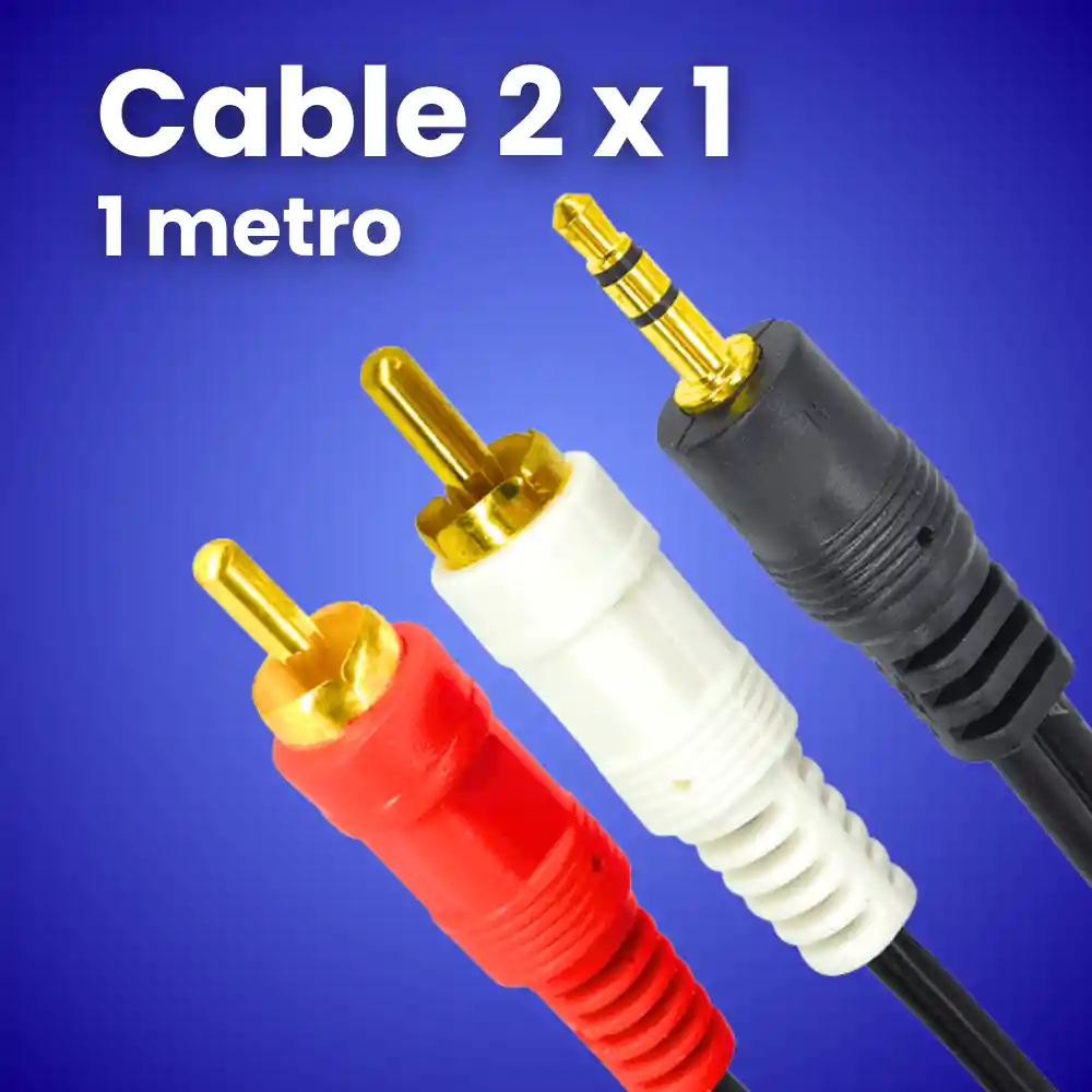 Cable de audio 2 en 1 diseñado para conectar dispositivos con salida de 3.5mm (auxiliar) a equipos con entrada RCA (rojo/blanco). Ideal para transmitir sonido estéreo de forma sencilla y sin configuraciones complicadas. Solución práctica para el día a día. ⚙️ Características Conversión de Jack 3.5mm a RCA (L/R) Transmisión de audio estéreo Longitud de 1 metro Conectores con acabado dorado Plug & Play (sin instalación) Compatible con múltiples dispositivos 📦 Incluye 1 Cable 2x1 RCA a Jack 3.5mm (1 metro) 📊 Especificaciones Tipo: Cable de audio Conector 1: Jack 3.5mm macho Conector 2: 2x RCA macho (rojo/blanco) Señal: Estéreo (izquierda/derecha) Longitud: 1 metro Material: PVC + conectores metálicos ⚠️ Importante No mejora la calidad del audio, solo la transmite No es cable profesional ni de estudio Puede haber ligera interferencia en equipos de baja calidad No sirve para micrófono, solo audio de salida
