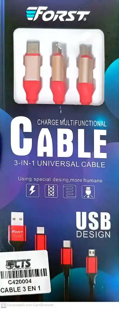 Cable 3 en 1 Forst, 2.5 A, 1.2 M, USB