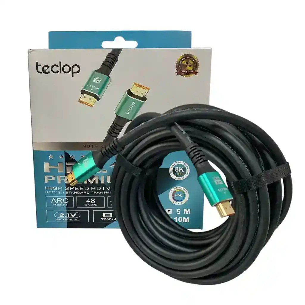 Tecnología y Resolución: Soporta resolución 8K Ultra HD (4320p) y cumple con el estándar HDMI 2.1. Velocidad: Está clasificado como "Premium High Speed", adecuado para transmisiones rápidas. Funcionalidades: Incluye soporte para ARC (Canal de Retorno de Audio) y una tasa de transmisión de datos de 48 Gbps. Disponibilidad: Disponible en longitudes de 5 a 10 metros, ideal para consolas como PlayStation 5 y Xbox Series X.
