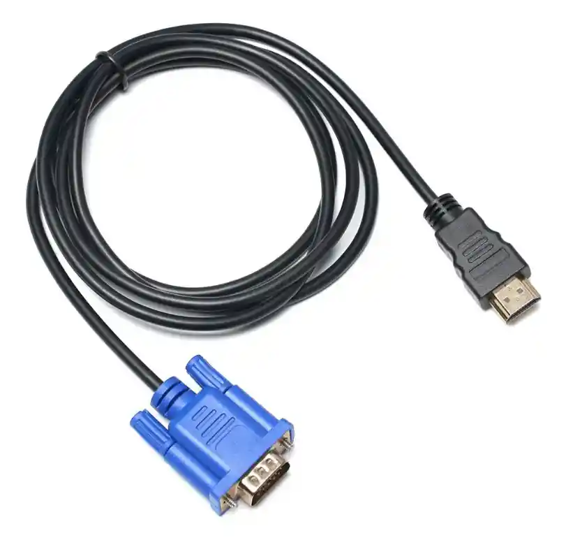 Cable HDMI a VGA Compatible 1080P Alta Calidad con Conectores Dorados Cable 100% nuevo y de alta calidad, diseñado para conectar dispositivos con salida HDMI a monitores o proyectores con entrada VGA, siempre que los equipos sean compatibles con la conversión de señal. Ideal para proyectores, monitores, decodificadores, reproductores HD y más. Características principales: Compatible con señales digitales 720p, 1080i y 1080p Conector HDMI chapado en oro de 24 quilates, resistente a la corrosión Material aislante de espuma N2 que mejora la velocidad de transmisión y reduce la pérdida de señal Doble blindaje que elimina la diafonía durante la transmisión Diseño con doble anillo magnético que mejora la estabilidad y reduce interferencias Adaptación de impedancias por par trenzado que evita errores de transmisión Revestimiento flexible y duradero con alivio de tensión para evitar daños por doblez Diseño antideslizante del enchufe, fácil de conectar y manipular Compatibilidad: Este cable permite transferir señal desde dispositivos con salida HDMI hacia pantallas con entrada VGA, siempre que ambos dispositivos soporten la conversión de señal (no es un conversor de señal). Importante: Este cable no convierte señal digital a analógica. No funciona si tu equipo no soporta conversión directa No recomendado para conexión en caliente. Conectar siempre con los equipos apagados No convierte de VGA a HDMI En caso de incompatibilidad, es necesario un convertidor activo Contenido del paquete: 1 Cable HDMI a VGA Garantía del vendedor: 30 días por defectos de fábrica No aplica en caso de daño por mal uso, humedad o golpes Es necesario conservar caja y comprobante de compra TECNO ANDRES – Tecnología funcional a tu alcance