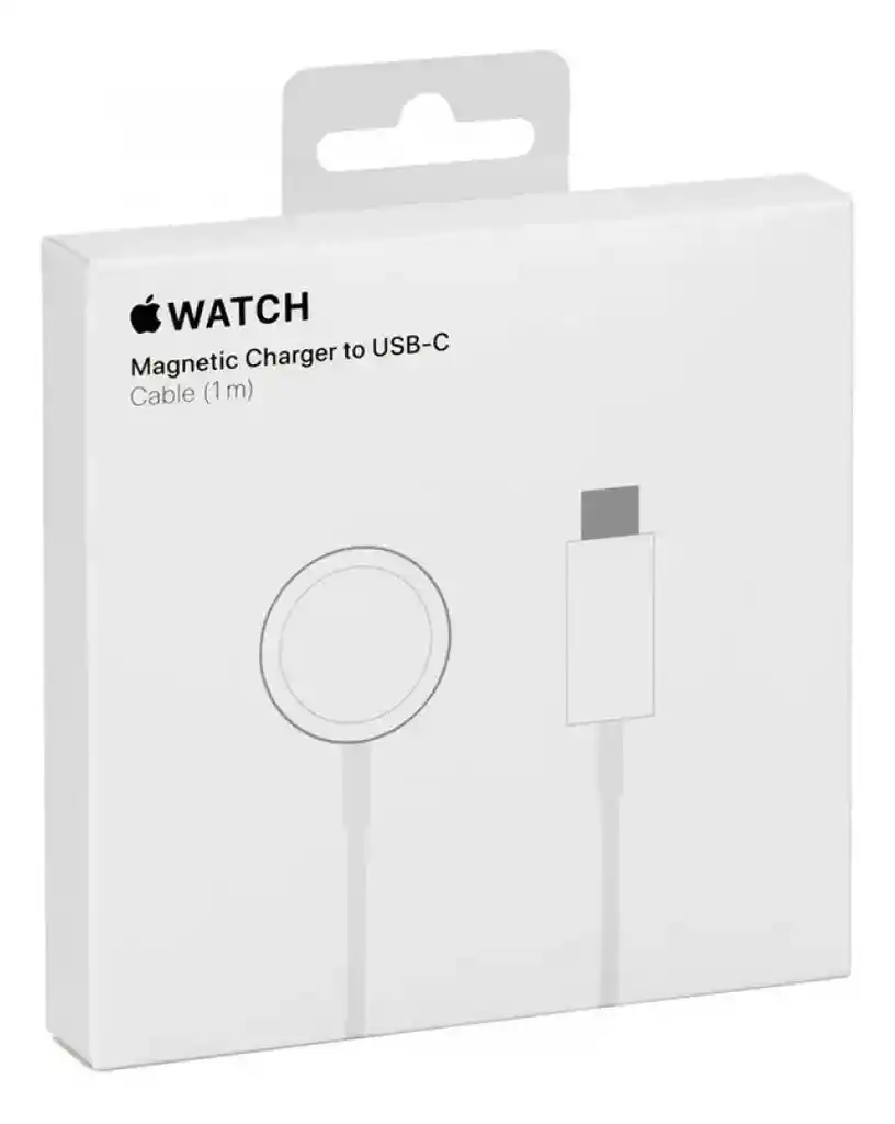 Cable Cargador Magnético Usb-C Para Apple Watch (Adaptador de corriente No incluido) Carga rápida en Apple Watch Serie 10, 9, 8 ,7, Ultra y Ultra 2 ----------------------------------------------------------------------------------------------------------- Cargar el Apple Watch es facilísimo. Y es hasta un 33 % más rápido en el Apple Watch Series 9,8,7, Ultra y Ultra 2 que puede alcanzar el 80 % de carga en menos de una hora. Solo tienes que acercar el conector a la cara interna del reloj y los imanes se encargan de todo. Se trata de un sistema completamente sellado en el que ningún contacto queda expuesto. También es superpráctico, porque ni siquiera necesita una alineación perfecta.