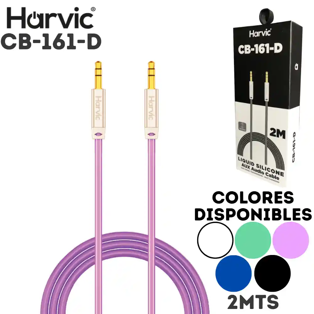 Cable Auxiliar 1 X 1 Estereo Plug 3.5mm Harvic CB-161-D 2 Metros COLORES DISPONIBLES: Rosado, Blanco, Verde, Azul y Negro NOTA: selecciona color de preferencia, en caso de no ser seleccionado, se enviará color sujeto a disponibilidad Conecta tu música en cualquier lugar con este cable 1X1, la solución práctica, versátil y de alta calidad para enlazar tus dispositivos de audio. Diseñado para ofrecer una transmisión de sonido clara y sin interferencias, este cable es ideal para reproducir tu música favorita en el coche, altavoces, auriculares, o cualquier equipo compatible con entrada auxiliar de 3.5mm. Características: -Sonido de alta calidad -Perfecto para todos tus dispositivos -Largo: 2 Metros -Material: Sintético