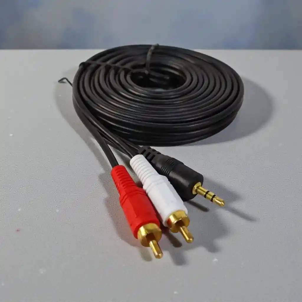 Cable de audio 2 RCA a plug 3.5 mm de 5 metros, diseñado para transmitir sonido estéreo de forma clara y estable. Ideal para conectar celulares, computadores, tablets o reproductores de audio a equipos de sonido, televisores, amplificadores y bafles con entrada RCA. Su longitud extendida permite mayor comodidad y flexibilidad en la instalación, sin pérdida notable de calidad de audio. Características principales: Tipo: Cable auxiliar de audio Conectores: 2 RCA (rojo/blanco) a plug 3.5 mm Longitud: 5 metros Audio estéreo Conexión estable y segura Material resistente y flexible Usos recomendados: Conectar celular o PC a equipo de sonido Televisores a parlantes o amplificadores Reproductores MP3, DVD, consolas y bafles Sistemas de audio para hogar u oficina Importante: Incluye únicamente el cable