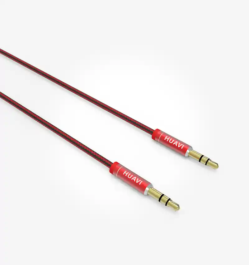 Cable auxiliar (JACK 3.5 mm) de 1 metro de largo, forrado de correa de tela protectora, conexión sin interferencias.