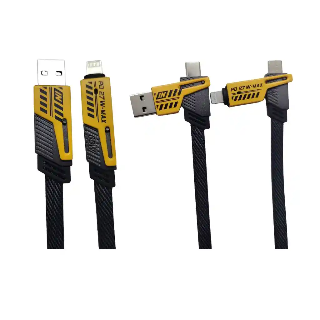 Cable de carga rápida PD 27W MAX con 4 puertos, diseñado para ofrecer máxima compatibilidad y versatilidad en un solo cable. Ideal para quienes tienen varios dispositivos, ya que permite cargar diferentes equipos sin necesidad de cambiar de cable. Cuenta con conectores reforzados y diseño en ángulo de 90°, lo que reduce la tensión en el puerto del dispositivo y permite usar el celular cómodamente mientras se carga. Su recubrimiento trenzado de nylon garantiza alta resistencia al desgaste, dobleces y uso diario. Compatible con múltiples dispositivos como celulares, tablets, power banks y otros equipos USB, brindando una carga estable, segura y eficiente. Perfecto para el hogar, oficina, viajes o uso intensivo. 4 puertos integrados en un solo cable Carga rápida PD hasta 27W MAX Conectores angulares 90° reforzados Cable trenzado de alta durabilidad Amplia compatibilidad con múltiples dispositivos Somos INVERSIONES MAZUGI. Importadores directos desde china Cumplimos con distribuir a todo el país. Estamos ubicados en Bogotá, somos tienda virtual y física PRODUCTOS AL POR MAYOR Y DETALLE Somos una empresa importadora y comercializadora de productos de Alta Calidad de varias categorías como: belleza, tecnología, hogar, juguetería, cuidado personal, entre otras.