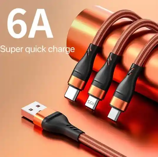 ¡Por supuesto! Aquí tienes una descripción para vender el Cable de Carga Universal de Carga Rápida de 3ra Generación: ¿Estás listo para la máxima velocidad y versatilidad en carga? Presentamos nuestro Cable de Carga Universal de 3ra Generación, una joya tecnológica que redefine la eficiencia y la comodidad en la carga de tus dispositivos. Con una potencia notable de 6 amperios, este cable de alta calidad garantiza una carga ultra rápida sin comprometer la seguridad de tus dispositivos. Olvídate de las largas esperas y mantén tus dispositivos al máximo rendimiento en tiempo récord. Equipado con interfaces Lightning, Micro USB y TYPE-C a USB A, este cable es la solución perfecta para cargar una amplia variedad de dispositivos, desde smartphones y tablets hasta cámaras y otros aparatos electrónicos. ¡La conectividad total al alcance de tu mano! Con una longitud de 120 CM, este cable te brinda la libertad necesaria para cargar tus dispositivos desde cualquier ángulo y ubicación. Su diseño acordonado no solo evita enredos molestos, sino que también garantiza una durabilidad excepcional, resistiendo el desgaste diario. Prepárate para una experiencia de carga sin igual. Nuestro Cable de Carga Universal de Carga Rápida de 3ra Generación es el compañero perfecto para mantener todos tus dispositivos cargados, listos y en pleno funcionamiento en cualquier momento y lugar.