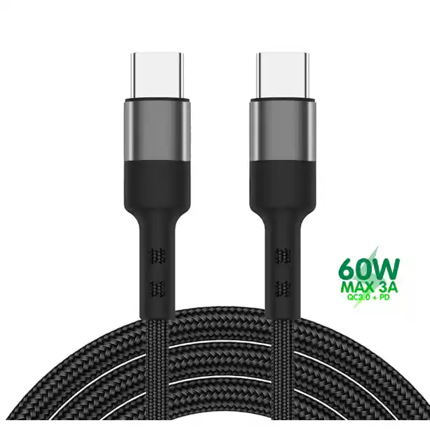 Cable Cargador Y Datos Tipo C Carga Rápida 60w 3a De 2m Negro