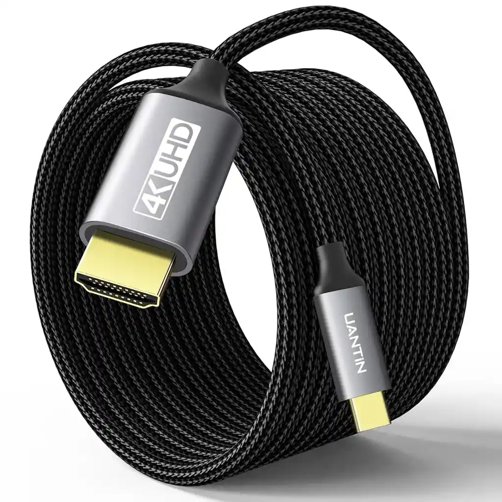 AL0000001694 CONECTA Y REPRODUCE: Transmite contenido 4K UHD desde tu laptop USB-C (como MacBook Pro/Air, Surface), tableta o teléfono a una pantalla más grande, como monitores, TV, proyecto con entrada HDMI. No requiere controlador, enchufa y lista. Soporta resoluciones de hasta 3840* 2160@60Hz incluyendo, 2K @144Hz, 1080P, 720p, 1600x1200, 1280x1024 para monitores o proyectores de alta definición *Nota: cable unidireccional, exclusivamente desde dispositivos host USB-C a pantallas HDMI. ESTABILIDAD SUPERIOR: El chip IC avanzado integrado convierte la señal digital USB-C en señal HDMI el conector niquelado garantiza una transmisión de datos segura de alta velocidad libre de interferencias y el moldeado uni-body hace que sea irrompible. La carcasa de aluminio disipa el calor de manera eficiente para un uso a largo plazo. El alambre de cobre más grueso minimiza distintivamente la pérdida de señal con la máxima conductividad. CARCASA DE ALUMINIO, NAILON TRENZADO: Chaqueta de cable trenzado de nailon, no te preocupes por deshilacharse, calentar, doblarse. Agarre antideslizante para el pulgar, enfríe al enchufar. Elegantes piezas de metal gris optimizadas conectadas sin problemas, a prueba de golpes. Longitud perfecta para la configuración de oficina en casa con un lazo de velcro adicional para viajar. AMPLIA COMPATIBILIDAD: Compatible con iPhone 15 Pro/Max, Apple MacBook Pro/Air M1, MacBook Pro 2016 o posterior, MacBook Air 2018 o posterior, iPad Pro 2018 o posterior, iPad Air 2020-2022, XPS 17/15/13, Surface Book 3/2, Surface Laptop 4/3, Surface Pro 7, Samsung Tablet S9/S9/S9. 8/S7, Galaxy S23/S22/S21/S20. (más dispositivos compatibles ver descripción). INCLUYE: 1 Cable de tipo C a HDMI de 3 metros de longitud