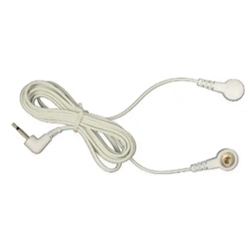 Este cable para Equipo y tens es de larga durabilidad por su flexibilidad y su diseño ergonómico. Tiene tapón de seguridad en cada conector para evitar que se quiebre, Se puede limpiar fácilmente por su forrado en PVC. Puede conectar 2 electrodos. Se acondiciona fácilmente a cualquier equipo de corrientes eléctricas para Estetica, fisioterapia, Medicina Alternativa o Tens El cable para Equipo o Tens Longitud 1,2 mts., Forrado en PVC, tapón de seguridad, dos conectores de clip hembra, para 2 electrodos, Color blanco. La seguridad de conexión con el electrodo es de clip, lo que permite que case perfectamente y su conductividad sea efectiva y uniforme. Cualquier Equipo o Tens o equipo que tenga este tipo de conexión puede utilizar este cable, ya que está elaborado para soportar corrientes de baja y media frecuencia otros que le ayudan a deteriorar el forro de PVC y puede generar un corto. No dejar presionar el cable con ningún objeto ya que se pude romper. Características principales Color Blanco Largo 1.2 mts. Forrado en PVC Tapón de seguridad en conectores Para conectar 2 electrodos. Especial para Equipo o Tens.
