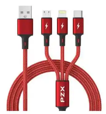 • Cable de Carga 3 en 1 PZX • Tres Interfaces: Micro/Typec/iOS Amperaje 3.0 largo 1.2mts, material nylon