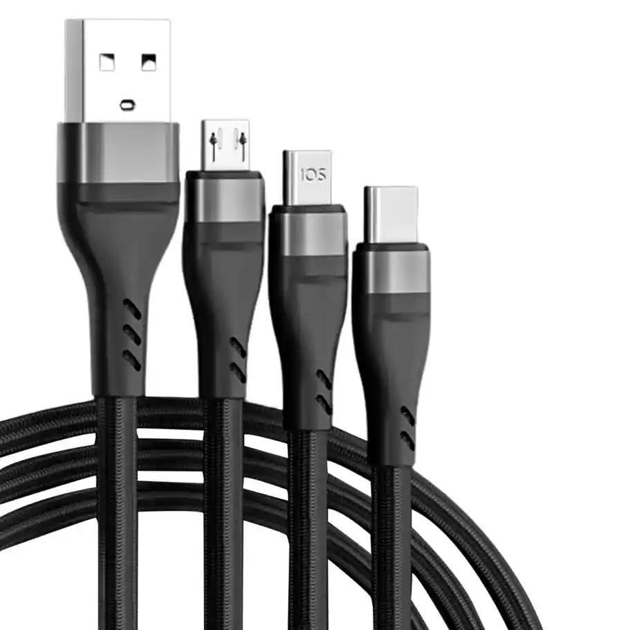 ¿Estás listo para la máxima velocidad y versatilidad en carga? Presentamos nuestro Cable de Carga Universal de 3ra Generación, una joya tecnológica que redefine la eficiencia y la comodidad en la carga de tus dispositivos. Con una potencia notable de 6 amperios, este cable de alta calidad garantiza una carga ultra rápida sin comprometer la seguridad de tus dispositivos. Olvídate de las largas esperas y mantén tus dispositivos al máximo rendimiento en tiempo récord. Equipado con interfaces Lightning, Micro USB y TYPE-C a USB A, este cable es la solución perfecta para cargar una amplia variedad de dispositivos, desde smartphones y tablets hasta cámaras y otros aparatos electrónicos. ¡La conectividad total al alcance de tu mano! Con una longitud de 120 CM, este cable te brinda la libertad necesaria para cargar tus dispositivos desde cualquier ángulo y ubicación. Su diseño acordonado no solo evita enredos molestos, sino que también garantiza una durabilidad excepcional, resistiendo el desgaste diario. Prepárate para una experiencia de carga sin igual. Nuestro Cable de Carga Universal de Carga Rápida de 3ra Generación es el compañero perfecto para mantener todos tus dispositivos cargados, listos y en pleno funcionamiento en cualquier momento y lugar.