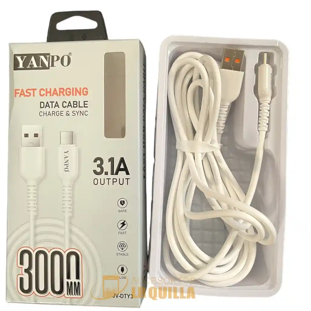 CARGA RAPIDA Modelo: Tipo C Material: PVC Longitud: 3 metros Color: Blanco Amperaje: 3.1 Compatible con cualquier dispositivo con puerto Tipo C ✅Nuestros productos antes de ser enviados son probados ✅Para la garantía el producto debe mantener sus sellos y no cubre daños ocasionados por el comprador ✅La factura de compra será enviada a su correo electronico