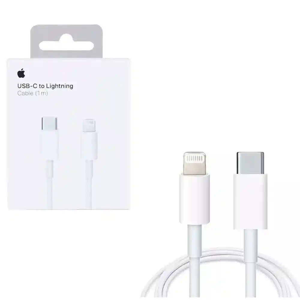 Cable Iphone Tipo C - 1 metro Carga rapida Carga o sincroniza tu iPhone, iPad o iPod con conector Lightning a través de un puerto USB-C o Thunderbolt 3 (USB-C) de tu Mac. También puedes usarlo con el adaptador de corriente USB-C de 18W, 30W, 61W u 87 W de Apple para cargar tu dispositivo iOS. Puedes aprovechar la función de carga rápida del iPad Pro, iPhone 8, iPhone 8 Plus y iPhone X. ESPECIFICACIONES TÉCNICAS: Conector USB Tipo C Carga rapida Voltaje Entrada: 100-240V (0.75A) 50-60Hz Longitud del cable: 1m Permite Conectar con adaptador de corriente USB tipo C de 18W, 30W, 61W u 89W • Largo 1 metro • USB 2.0 (puede cargar y sincronizar a alta velocidad) • Color blanco • 2.1 amperios • 12v /9v/5v • Compatible con todos los modelos de APPLE Lightning Permite cargar dispositivos con Conector Lightning (Iphone, Ipad, Ipod) desde cargadores con conector tipo C o directamente desde el puerto tipo C de los computadores Mac de última generación.