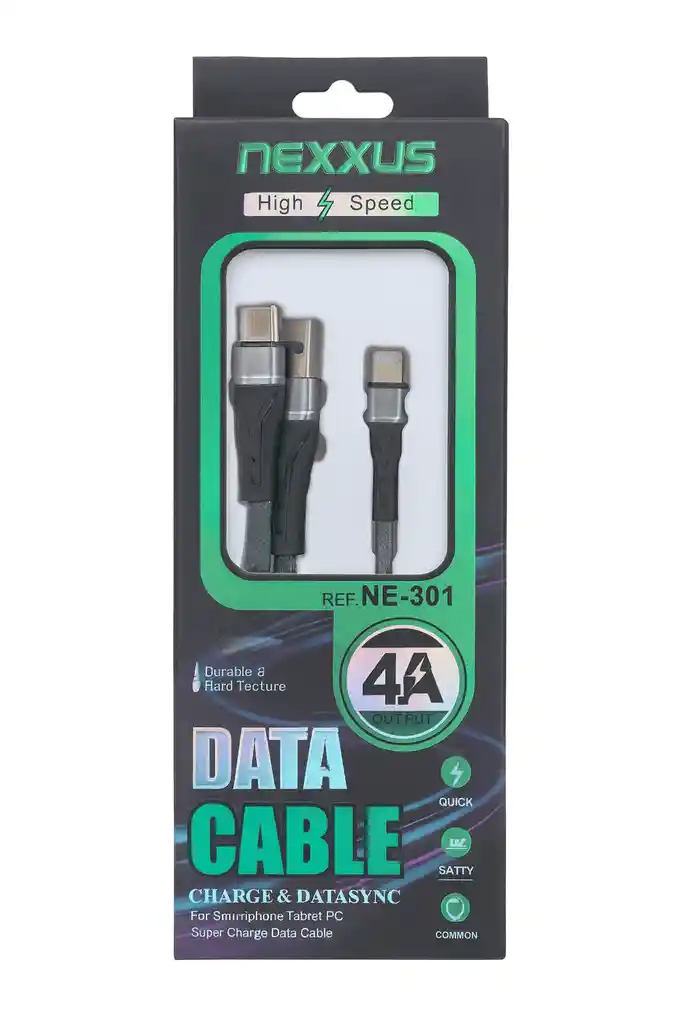 Cable Nexxus NE-301 – 4A Alta Velocidad Cable de datos y carga Nexxus 4A, diseñado para ofrecer carga rápida y transferencia estable. Material resistente, duradero y con textura reforzada. Ideal para smartphone, tablet y otros dispositivos. ¡Conecta, sincroniza y carga a máxima velocidad con la calidad Nexxus!