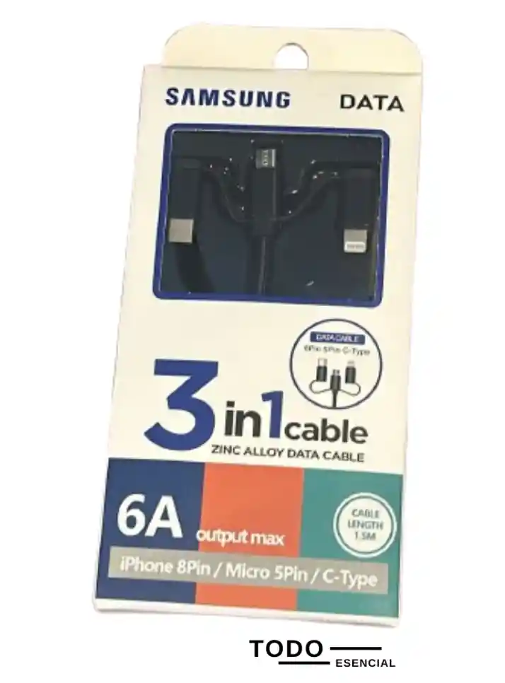 Cable de carga y de transferencia de datos, 3 en 1, USB-V8, USB-tipo C/ y USB/Lightning