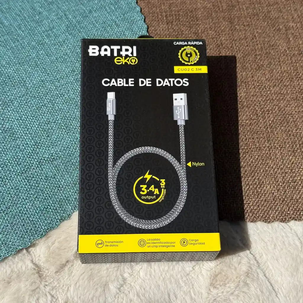 Cable De Datos O Carga Usb A Tipo C 3 Metros / 3.4a Cubierto Nylon / Batri
