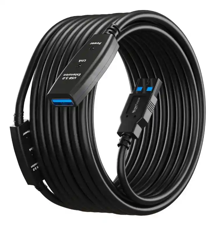 Cable De Extensión USB 3.0 Activo de 15 m – Tipo A Macho a A Hembra Lleva tu conectividad al siguiente nivel con este cable prolongador USB 3.0 activo de 15 metros. Diseñado para superar los límites de distancia sin pérdida de señal, este cable incluye un amplificador interno que garantiza una transmisión de datos estable y de alto rendimiento, ideal para trabajo profesional, periféricos exigentes y entornos que requieren distancia adicional. Características destacadas: Extensión activa con refuerzo de señal: Equipado con circuito amplificador que mantiene la integridad de la señal en toda la longitud del cable, incluso a 15 metros. Velocidad de transferencia: Compatible con USB 3.0 de hasta 5 Gbps. Retrocompatible con USB 2.0 y USB 1.1. Plug and Play: No requiere instalación de drivers. Totalmente compatible con sistemas Windows, macOS y Linux. Conectores: USB A macho (entrada) y USB A hembra (salida). Indicadores LED: Incluye luces que muestran el estado de conexión y alimentación. Compatibilidad: Perfecto para extender la conexión de: Impresoras Escáneres Discos duros externos Monitores USB (DisplayLink) Teclados, ratones, lectores de tarjetas, memorias USB y más. Advertencias importantes: No recomendado para cargar dispositivos. No es compatible con iPads, iPhones o aparatos de cine en casa como TVs o Blu-ray. Dispositivos de alto consumo energético podrían requerir un HUB alimentado adicional. El cable consume aproximadamente 66 mA del puerto USB asegúrate de no exceder el límite del puerto si encadenas varios cables. Especificaciones técnicas: Longitud: 15 metros Velocidad máxima: 5 Gbps (USB 3.0) Conector 1: USB A macho Conector 2: USB A hembra Compatibilidad: USB 3.0 / 2.0 / 1.1 Consumo estimado del cable: 66 mA Material: PVC resistente con blindaje interior Instalación: Plug and Play LEDs: Indicadores de encendido y conexión Velocidades de referencia según estándar USB: USB 1.1: hasta 12 Mbps USB 2.0: hasta 480 Mbps USB 3.0: hasta 5 Gbps Garantía del vendedor: 1 mes por defectos de fábrica. No aplica en caso de daño por mal uso, humedad o golpes. Es necesario conservar caja y comprobante de compra. TECNO ANDRES – Tecnología funcional a tu alcance.