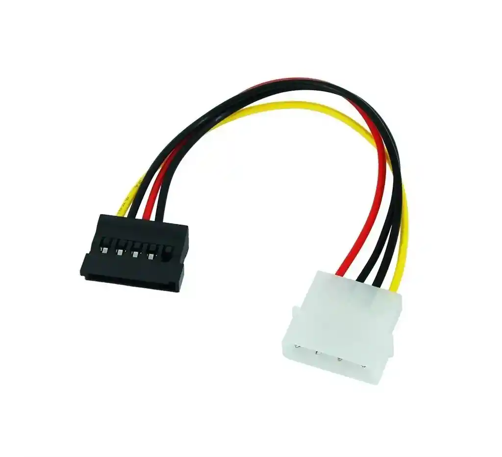 Cable de poder molex macho a sata hembra 15 centimetrosDescripción:Convierte la salida de poder de Molex a sataEl cableado delgado y flexible facilita el enrutamiento.Nuevo 100% con buena calidadAplicable para el disco duro del ordenador