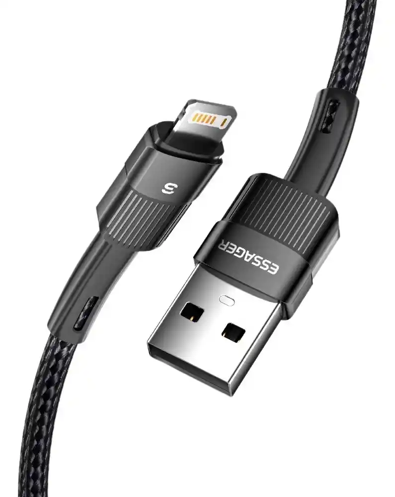 Este cable de la marca ESSAGER está diseñado para ofrecer una solución robusta y conveniente para cargar y transferir datos entre dispositivos con conector Lightning. Cuenta con un diseño trenzado que incrementa su durabilidad, incluye una luz LED indicadora de carga, y está pensado para soportar el uso diario prolongado, tanto en el hogar como en el auto u oficina. Especificaciones destacadas Longitud: 2 metros Conectores: USB-A a Lightning Corriente de carga: hasta aproximadamente 2,4 A (versión Lightning) Velocidad de transferencia de datos: hasta aproximadamente 480 Mbps Material: recubrimiento trenzado de cable (TPE+PP o tejido de alta densidad) que mejora resistencia al desgaste, al doblado y evita enredos Indicador LED: luz integrada que permite ver el estado de carga, útil especialmente en ambientes con poca luz Compatibilidad: diseñada para dispositivos Apple con puerto Lightning