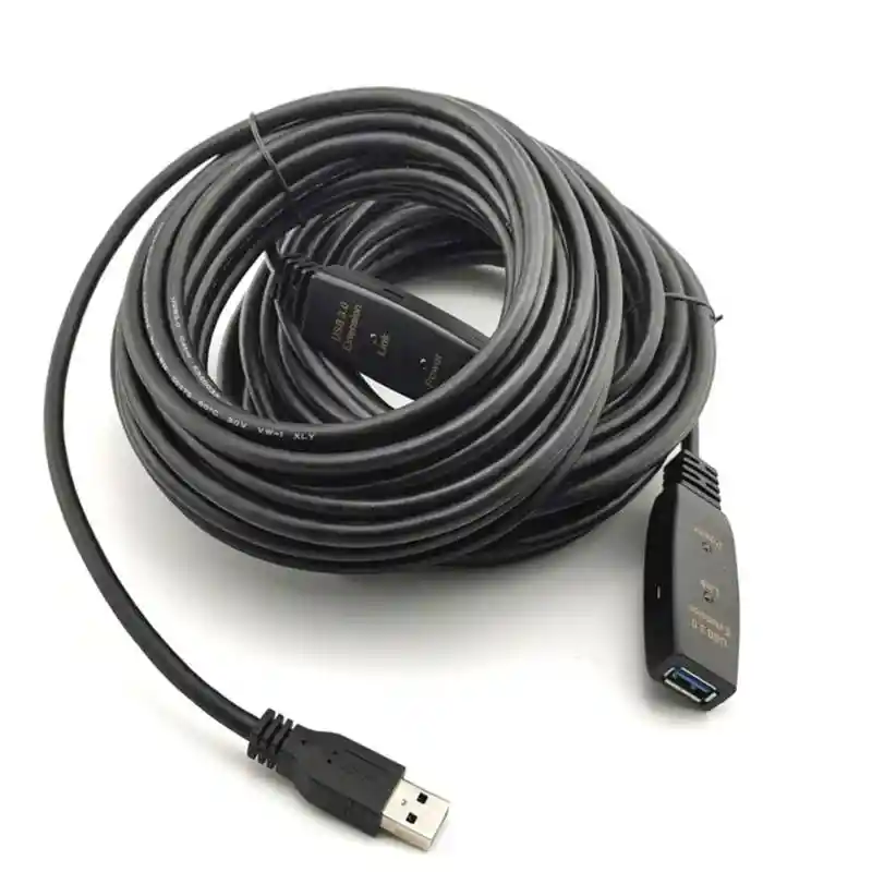 USB-A 3.0 SuperSpeed Cable de extensión activo Cable repetidor, macho a hembra, 32,8 pies/15 metros, Extiende una señal USB 3.0 33 pies (15metros). Funciona con cables USB 3.0 estándar. Proporciona hasta 120 mAh de potencia al dispositivo conectado. Acepta una fuente de alimentación de 5 V, 2 A con conector de CC de 3,5 mm x 1,35 mm. Compatible con generaciones anteriores de USB, localiza impresoras o cualquier otro periférico USB