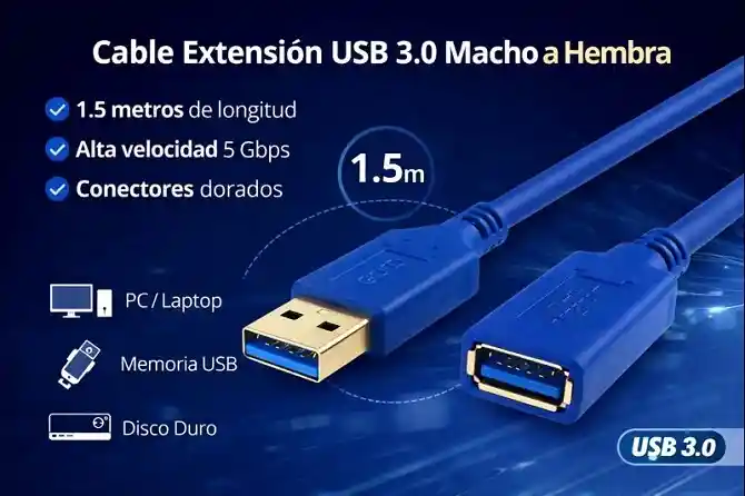 El Cable Extensión USB 3.0 de 3 metros de la marca Hepa es la solución ideal para aquellos que buscan conectar dispositivos con comodidad y eficacia. Con su diseño macho-hembra, permite extender la conexión USB de forma práctica, facilitando el acceso a periféricos y dispositivos de almacenamiento en diferentes entornos. Este cable, con una longitud de 1.5 metros, garantiza una transmisión de datos rápida, gracias a su tecnología USB 3.0, que ofrece velocidades de transferencia significativamente superiores a las versiones anteriores. Es perfecto para usar con productos Mac, asegurando una compatibilidad y desempeño óptimos. El conector de entrada USB hembra y el conector de salida USB macho permiten que este producto se integre de manera eficiente en cualquier configuración, ya sea en el hogar, la oficina o el estudio. Además, su acabado de alta calidad proporciona durabilidad y resistencia al desgaste diario. Opta por el Cable Extensión USB 3.0 de Hepa y mejora tu experiencia de conexión. Ideal para amantes de la tecnología que requieren flexibilidad y rendimiento en sus dispositivos. No te limites: expande tus posibilidades con este cable de datos diseñado para satisfacer tus necesidades.