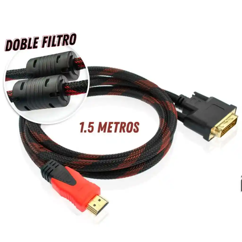 Conectá tu PC, notebook, consola o reproductor con salida HDMI a un monitor, TV o proyector con entrada DVI de forma rápida y segura. Este cable HDMI a DVI‑D (24+1 pines) de 1,5 metros está mallado en nylon y cuenta con doble filtro de ferrita, lo que reduce interferencias y asegura una imagen estable y nítida en Full HD 1080p. Ideal para oficinas, gamers y uso hogareño cuando querés aprovechar un monitor DVI con equipos que solo tienen HDMI. Características principales Tipo de cable: HDMI macho a DVI‑D 24+1 macho (Dual Link) Longitud: 1,5 metros Resolución soportada: hasta 1920x1080 (Full HD) Cable enmallado (nylon): mayor resistencia y durabilidad Doble filtro de ferrita: minimiza ruidos e interferencias electromagnéticas Conectores bañados en oro para mejor contacto y transmisión de señal Uso recomendado: PC, notebook, consola, decodificador, TV Box, reproductor DVD/Blu‑ray, proyectores, monitores LCD/LED con entrada DVI Importante Transmite solo video digital (la conexión DVI no transporta audio). No es un convertidor activo; funciona cuando los equipos soportan señal digital HDMI/DVI de forma nativa. Especificaciones técnicas Conectores: HDMI macho / DVI‑D 24+1 macho Tipo de señal: Video digital Color del cable: Negro con detalles rojos Revestimiento: Malla trenzada de nylon Filtros: 2 núcleos de ferrita (uno en cada extremo)