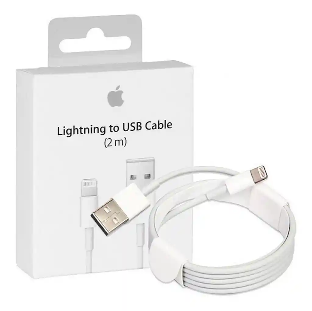 Cable Lighting 2 metrosEste cable USB 2.0 conecta tu iPhone. iPad o iPod con conector Lightning al puerto USB de tu computadora para sincronizarlos y cargarlos.También puedes conectar tu dispositivo al adaptador de corriente USB de Apple para cargarlo desde una toma de corriente.Compatibilidad------------------------------------------------- -----------Modelos de iPhoneiPhone XSiPhone XS MaxiPhone XRiPhone XiPhone 8iPhone 8 PlusiPhone 7iPhone 7 PlusiPhone 6siPhone 6s PlusiPhone 6iPhone 6 PlusiPhone SEiPhone 5siPhone 5ciPhone 5Modelos de iPadiPad mini 4iPad mini 3iPad mini 2Modelos de Apple WatchSeries 4Series 3Series 2Series 1Primera generaciónModelos de iPodiPod touch de sexta generacióniPod touch de quinta generacióniPod nano de séptima generacióniPod shuffle de cuarta generación