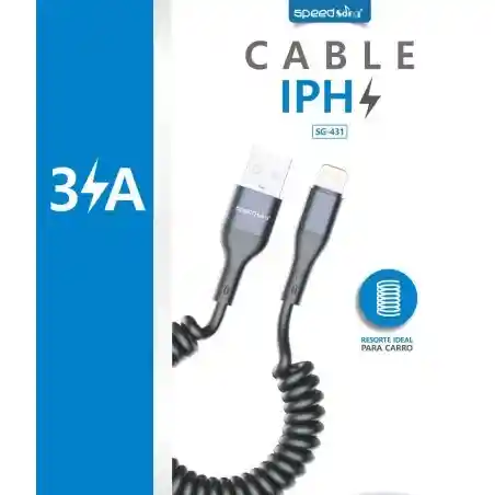 Cable Iphone Resortado Para Carro Carga Rapida SG431 MATERIAL: CORDON RESISTENTE COLOR: GRIS CABLE: LIGHTNUNG LONGITUD:1 METRO