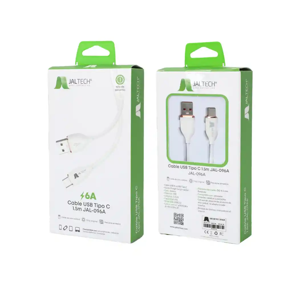 Cable Jaltech Usb A Usb C 1.5m 0906 Blanco