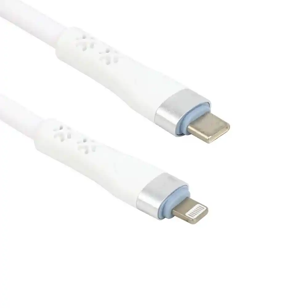 · Cable USB tipo C a Lightning · Conector lightning reforzado · Conector tipo C de alta calidad reforzado · Carga rápida · Transferencia de datos · Velocidad 10 Gbps · Recubrimiento en silicona · Cable redondo grueso · Calibre 6 mm · Alto rendimiento · Protección de sobre voltaje · Soporta hasta 6 amperios · 100 Watts de potencia permitida · Voltajes soportados 5V, 9V · Plug and play · Longitud del cable: 103 cm · Peso: 42 gr