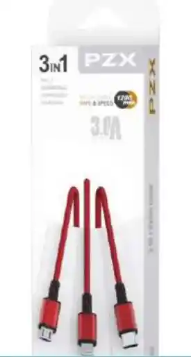 Cable de Carga 3 en 1 / Tres Interfases: Micro / Type C / iOS / Amperaje: 3.0A / Largo: 1.2 M / Material: Nylon