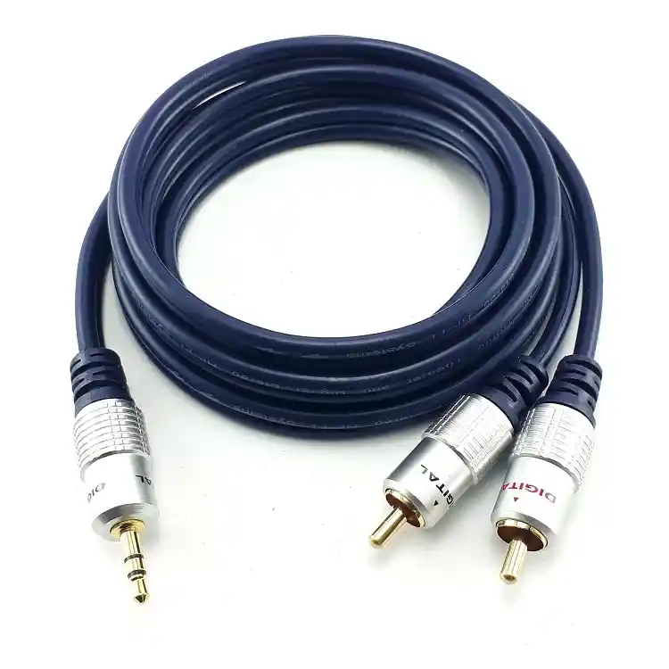 Cable plug - jack 3.5mm TRS a 2 RCA; ideal para conectar tu celular, computadora, portátil, tablet, tv, etc, a tu consola, interfaz, equipo de sonido, teatro en casa, etc. También puedes conectarte a unos parlantes con entrada jack 3.5mm (la entrada tradicional de audio) desde tu consola, interfaz, etc. El cable al ser blindado y ser 100% cobre otorga gran calidad de audio.
