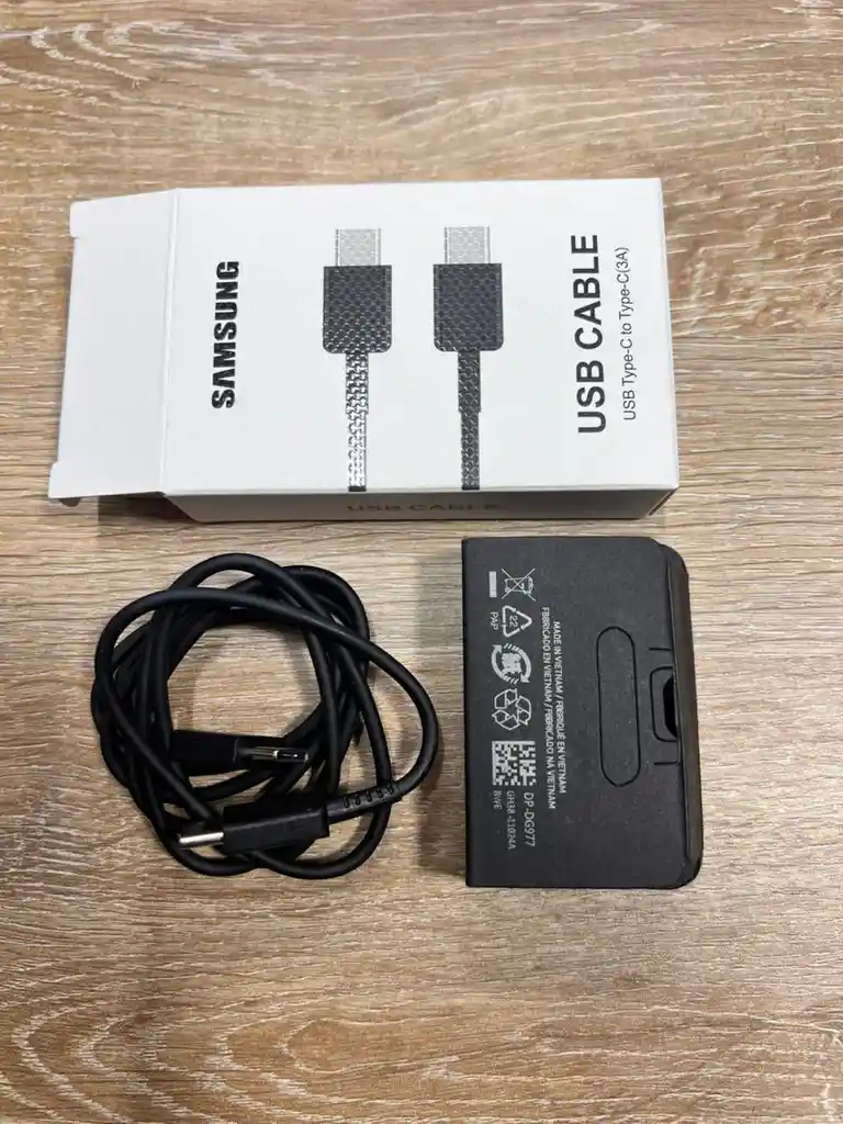 Marca: Samsung Tipo: Cable de datos y carga rápida Modelo: EP-DN975 (o equivalente 3A PD) Conector 1: USB-C macho Conector 2: USB-C macho Corriente máxima: 3A Compatibilidad: Power Delivery (PD), Super Fast Charging (hasta 25W) Longitud: 1 metro aprox. Material: PVC resistente y flexible Color: Negro Función: Carga rápida y transferencia de datos Compatibilidad: Todos los dispositivos con puerto USB Tipo-C (Samsung, Xiaomi, Motorola, Huawei, etc.)