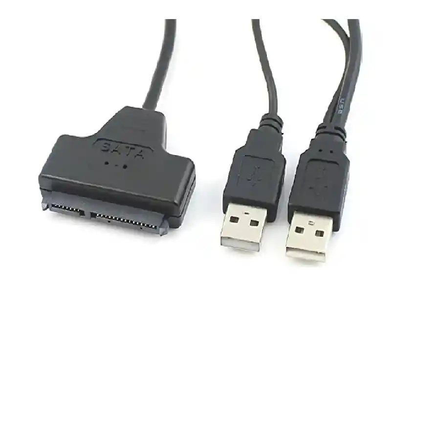 Cable sata a 2 USB, este producto cuenta con las siguientes características: -USB 2.0 A sata 7+15 pines. -Adaptador 22 pines para disco duro 2.5 Plg
