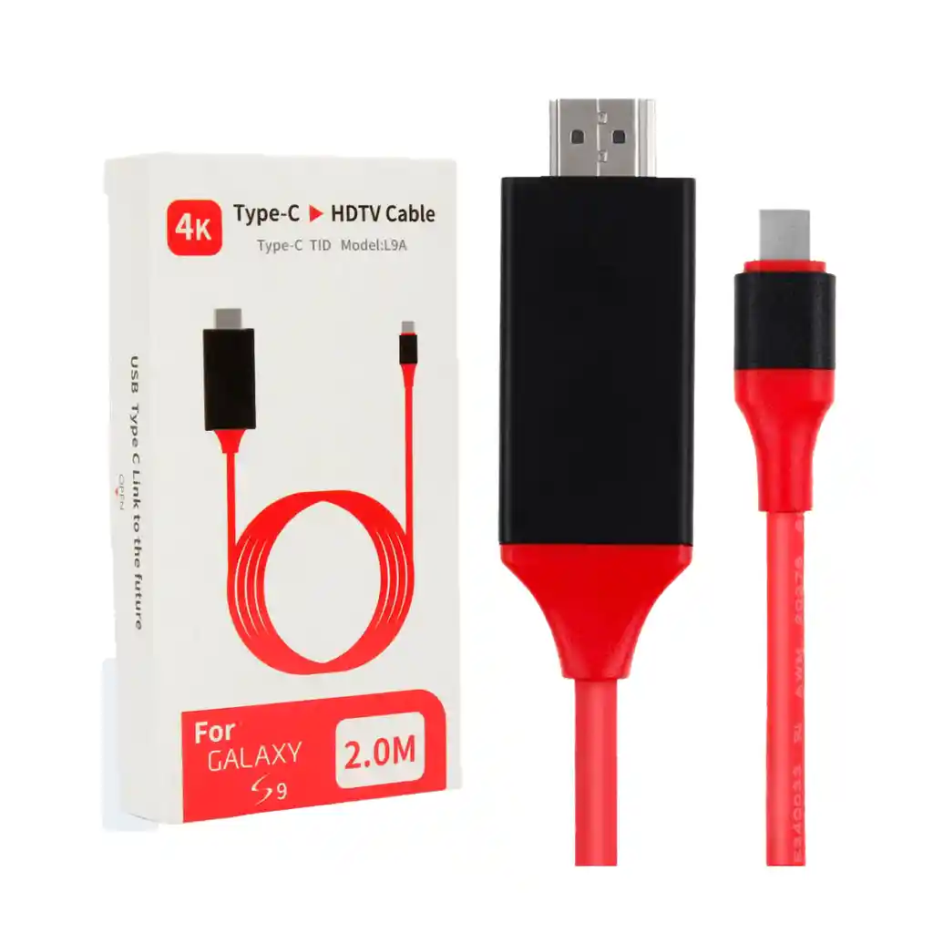 Cable HDMI MHL para Celular Tipo c Sirve para transmitir la pantalla del celular hacia el TV por medio de HDMI. Transferencia de imagen y sonido Compatible con celulares con entrada tipo C compatibles con Mhl. 2 metros de largo Color rojo con negro. Modelos Compatibles : Samsung Galaxy S8 Samsung Galaxy S8+ Samsung Galaxy S9 Samsung Galaxy S9+ MacBook note book
