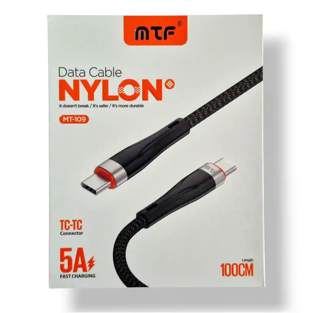 Cable de datos y carga Tipo C a Tipo C MTF 5(A) carga rápida Especificaciones y características: Modelo: MT-109 Salida: \(5\textV-5A\) Materiales: Metal y tela el material del cable es gel de sílice Velocidad de transmisión: \(480\text\ Mbps\) Compatibilidad: Certificado para funcionar perfectamente con cualquier dispositivo compatible Características de durabilidad: Unión irrompible, conectores de una sola pieza soldados con láser Probado para soportar hasta \(175\text\ lbs\) de fuerza Vida útil de más de \(25000\) dobleces Resistente al desgaste Otras características: Chip inteligente original, ampliamente compatible, carga segura a alta velocidad. Producto totalmente nuevo en caja sellada. Nota: El color del cable puede variar según la disponibilidad