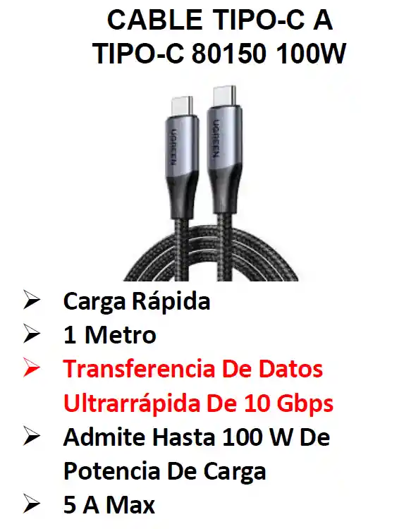 CargaRápida 1 Metro Transferencia De Datos Ultrarrápida De 10 Gbps Admite Hasta 100 W De Potencia De Carga 5 A Max EXPOTECNOLOGIA 3505945136