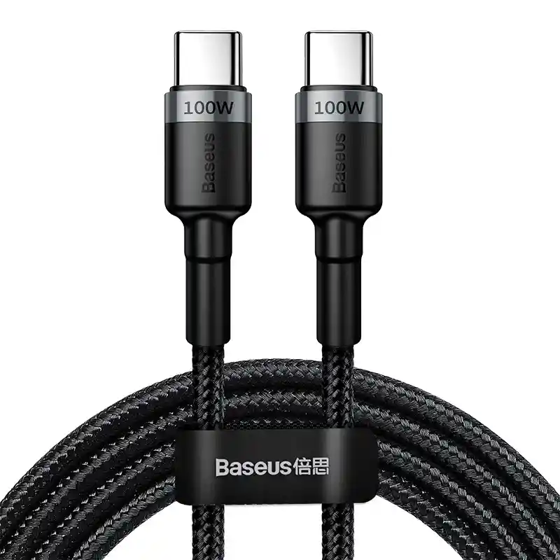 Cable USB de alta calidad diseñado para Macbook, Ipad, Dispositivos Móviles y otros con interfaz USB-C. Fabricado con inserción USB delgada de doble cara, SR Protección de cobertura total, aleación de aluminio, TPE y recubierto con alambre de nylon de alta densidad; diseño de color con puntadas de aleación de aluminio, confiriendo alta durabilidad. Soporta carga rápida con salida de corriente es 20V/5A 100W Estandar usb 2.0 que le permite una transmisión de datos de hasta 480mb por segundo. Incluye cinturón de velcro para que puedas llevar tu cable siempre ordenado. • Material: Aleación de aluminio + TPE + Alambre trenzado de nailon de alta densidad • Color: Gris Negro • Corriente de salida 20V / 5A 100W • Velocidad de transmisión de datos de alta velocidad : 480 Mbps INCLUYE Cable tipo C a Tipo C Cinturón de velcro