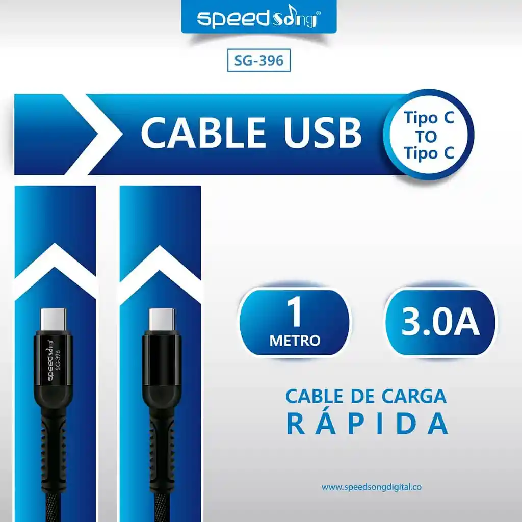 – Cable alta calidad – Tipo C a Tipo C – 1 Mt – 3 Amp - Cable en tela