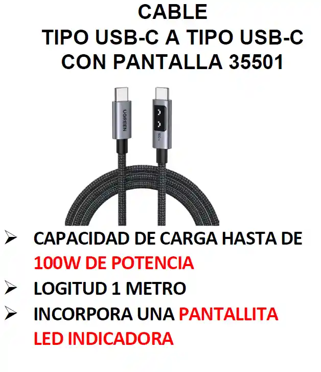 CAPACIDAD DE CARGA HASTA DE 100W DE POTENCIA LOGITUD 2 METRO INCORPORA UNA PANTALLITA LED INDICADORA EXPOTECNOLOGIA 3505945136