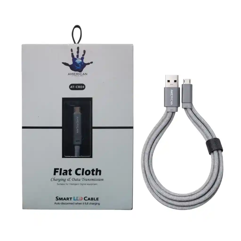 Cable USB a Micro USB V8 American AT-CB04 diseñado para ofrecer carga estable y transferencia de datos en dispositivos compatibles con entrada Micro USB (V8). Cuenta con recubrimiento textil reforzado (Flat Cloth) que mejora la durabilidad del cable y lo protege contra dobleces y uso continuo. Ideal para celulares, parlantes Bluetooth, tablets, power bank y otros dispositivos con puerto Micro USB. Características •Marca: American •Referencia: AT-CB04 •Tipo de conexión: •USB a Micro USB (V8) •Longitud: 1 metro •Material: Cable textil reforzado •Función: Carga y transferencia de datos •Color: Gris •Contenido del paquete 1 Cable USB a •Micro USB V8 •Caja original •Producto nuevo y listo para usar.