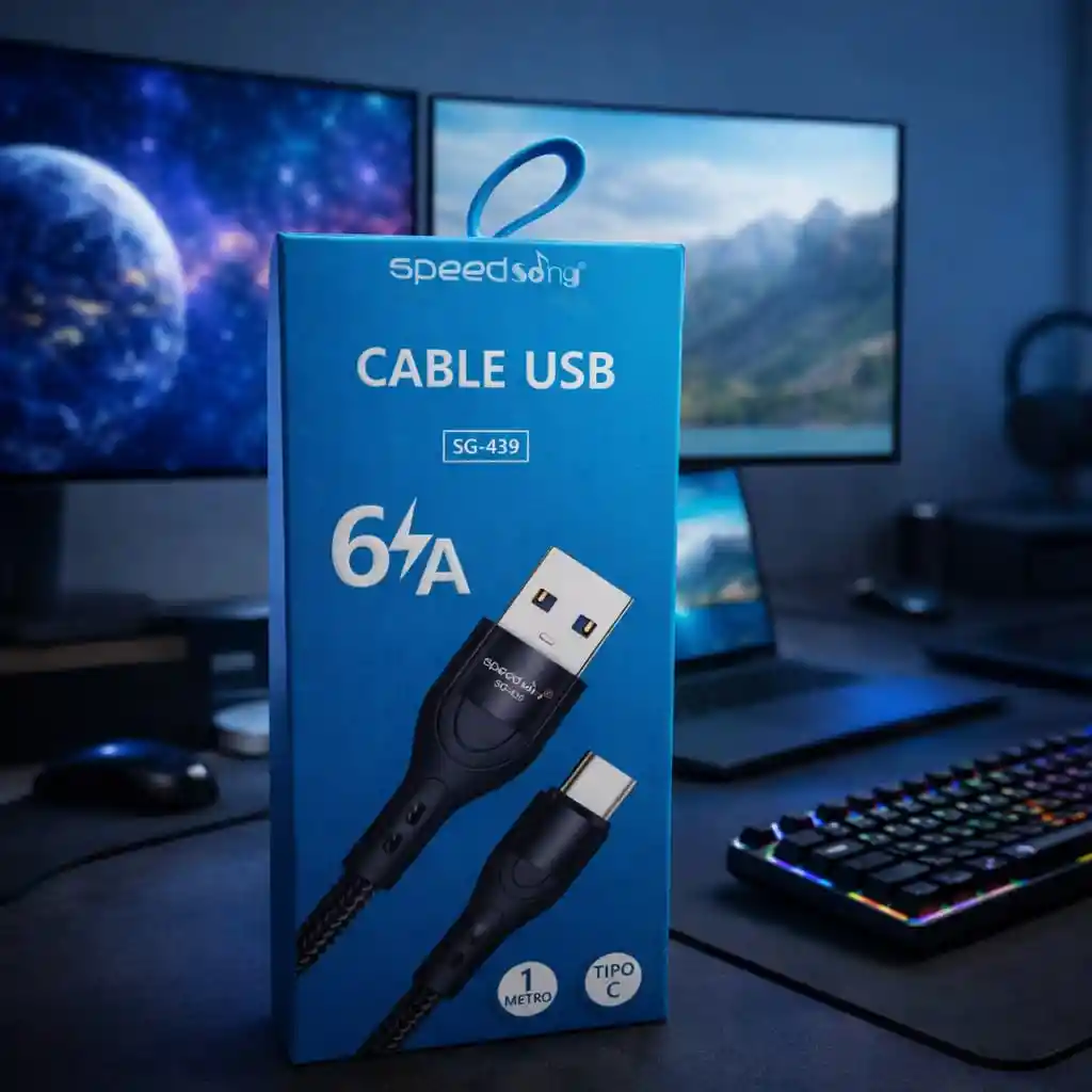 Cable USB a Tipo C SpeedSong referencia SG-439, diseñado para ofrecer carga rápida y transmisión estable de energía para celulares y dispositivos compatibles. Soporta hasta 6A de potencia, permitiendo una carga más eficiente para dispositivos compatibles con carga rápida. Su diseño con recubrimiento reforzado mejora la durabilidad y resistencia al uso diario. Con 1 metro de longitud, es ideal para utilizar en casa, oficina o mientras juegas, trabajas o utilizas tu celular. Características • Marca: SpeedSong • Referencia: SG-439 • Tipo de conexión: USB a Tipo C • Carga rápida: hasta 6A • Longitud: 1 metro • Cable reforzado para mayor durabilidad • Compatible con celulares, tablets y dispositivos con puerto Tipo C Contenido del paquete • 1 Cable USB a Tipo C SpeedSong SG-439 de 1 metro