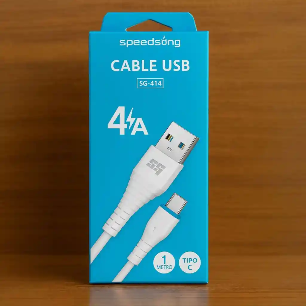 Cable USB Tipo C SpeedSong SG-414 Carga Rápida 4A Descripción: El Cable Speed Song SG-414 Tipo C a USB está diseñado para brindar una carga rápida y segura de hasta 4A, ideal para smartphones, tablets y dispositivos compatibles. Su longitud de 1 metro permite un uso práctico en casa, la oficina o el auto. Fabricado con materiales resistentes y conectores de alta calidad que aseguran una transmisión de energía estable y duradera. * Tipo C a USB * Carga rápida 4A * Longitud: 1 metro * Diseño reforzado y resistente •Color: Blanco