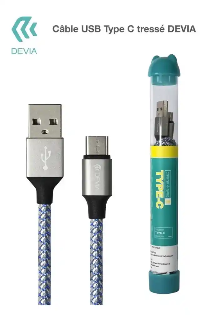 Cable universal Usb type-c disponible en Gris/Azul, te permitirá conectar teléfonos inteligentes a un cargador o computadora. Adecuado para cargar baterías y transferir datos en dispositivos equipados con una toma de tipo C. Características: - Material de alta calidad: TPE (elastómeros termoplásticos). - Diseño de puerto reforzado: anti-desvinculación y anti-offline, desgaste bien. - 2A Corriente fuerte: componentes de alta precisión, circuito de identidad de forma inteligente. - Rendimiento: carga inteligente. Transmisión de datos. - Voltaje de salida estable. - Tipo de interfaz: Cable tipo C. - Material de protección ambiental: SI. - Buen tacto de la mano, fácil de llevar. - Longitud: 1 Metro.