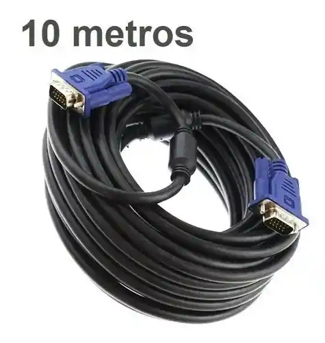 CABLE VGA DE 10METROS DE LONGITUD, CON CONECTORES BAÑADOS EN PLATA. ESTE CABLE PROPORCIONA UNA PERFECTA CONEXIÓN ENTRE DISPOSITIVOS SIN PÉRDIDA DE CALIDAD EN LA IMAGEN YA QUE POSEE 2 NUCLEOS DE FERRITA. ALTA CALIDAD COLOR: NEGRO/AZUL TIPO MACHO/MACHO BAÑADO EN PLATA NUCLEOS DE FERRITA. 10 METROS