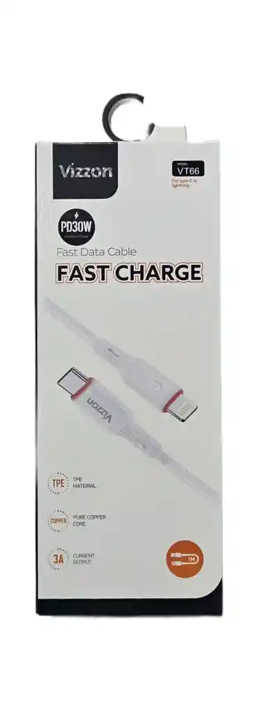 Cable Vizzon Tipo c a Lightning Color: Blanco *Entradas Tipo c a Lightning