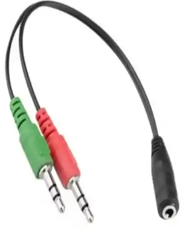 Adaptador para conectar auriculares con microfono incluido en computadores de doble entrada 3.5mm (audio y microfono). 1 hembra a 2 machos 3.5mm un adaptador (versátil en cable que te va a permitir utilizar tus diademas o manos libres de una sola salida en tu computador o laptop de doble entrada (una para audio y otra para microfono como puedes observar en las fotos). Beneficios y características fácil conexión pequeño y ligero, fácil de transportar no disminuye la calidad de sonido del micrófono ni del audífono longitud aproximada: 21 cm diseño moderno y portable peso: 12g aprox. Se puede conectar a cualquier auricular estéreo de 3,5mm con micrófono. Especificaciones 1 hembra a 2 machos conexión 3.5mm *se usa principalmente para computadores que tienen 2 entradas (1 para microfono y otra para audio) contenido del paquete. 1 splitter jack 3.5mm dos puertos macho: uno para conector de auriculares en tu pc/ordenador portátil, el otro para conector de micrófono en tu pc/ordenador portátil.