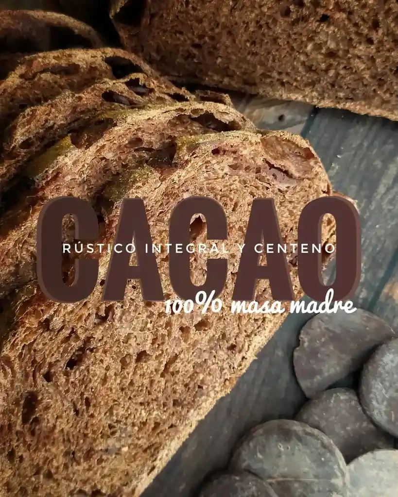 CACAO HERSHEYS Y PEDACITOS DE CHOCOLATE SIN AZÚCAR. Nuestro especial de Junio! No te quedes sin probarlo! Rústico integral y centeno tradicional (sin relleno) - costra crujiente y miga super suave. PRESENTACIÓN TAJADO. Toda nuestra panadería es 100% masa madre. Todos nuestros panes son integrales llenos de fibra. Durante nuestros procesos de fermentación de 24-48h la masa madre descompone hasta un 95% el gluten y llena al pan de probiótico y prebióticos. Resulta en un pan que no te va a inflamar, que tiene un sabor y textura incomparable y que además es el alimento necesario para nutrir y recuperar la microbiota del intestino. ¡La salud nace en nuestro intestino! LIBRE DE AZÚCAR, POLIALCOHOLES, HUEVO, MANTEQUILLAS, MARGARINAS, LÁCTEOS Y LEVADURAS.